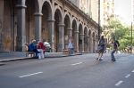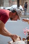 Estávamos literalmente no meio da avenida Borges de Medeiros, e parecia que o perigo vinha mais de uma ideia que tínhamos sobre a imagem (a foto do poema Cúpula Nuclear) do que o real, acontecendo ali. Segurei a mochila da Fernanda, que estava nas suas costas, para guiá-la de alguma maneira, quando o pessoal da equipe gritava que um automóvel ou algum ônibus se aproximava. Alguém já disse que os fotógrafos quando estão com o olho na câmera ficam cegos para o resto do mundo? Porque ela captava as imagens da “mesa de chá” no meio da rua, só aquilo existia. No centro da avenida, na única parte onde os veículos não podiam chegar até os atores e seus personagens, parecia que víamos uma outra dimensão se estabelecendo ali, na nossa frente, fictícia. E já conseguíamos ler o livro, antes dele estar pronto, antes da gráfica, antes da publicação. Aquilo ali também foi o livro. É o livro. A produção daquele momento, cada detalhe feito por todos nós. Os atores não se abalavam com o transtorno que é, ônibus e automóveis em velocidade, zunindo pra lá e pra cá. Tudo se movia entorno da cena, porém ela parecia estática; e ficou, depois, na fotografia ela se eternizou. A mesa de chá era surreal, e os transeuntes sentiam esse impacto em suas rotinas, eles interagiam com a aquela surpresa ilusionista, que não era teatro e não era cinema, e não era realidade tão pouco; então paravam, e perguntavam o que aquilo significava. Foi aí que começamos a entender: estamos fazendo algo diferente, pois temos a poesia e a fotografia sendo captadas juntas. As palavras vinham com força e pairavam no ar; os versos que inspiraram a cena, circundavam todos nós, mesmo que inconscientemente. A arte é assim, ela acontece sem a nossa permissão; no entanto, somos os agentes propulsores dela.
