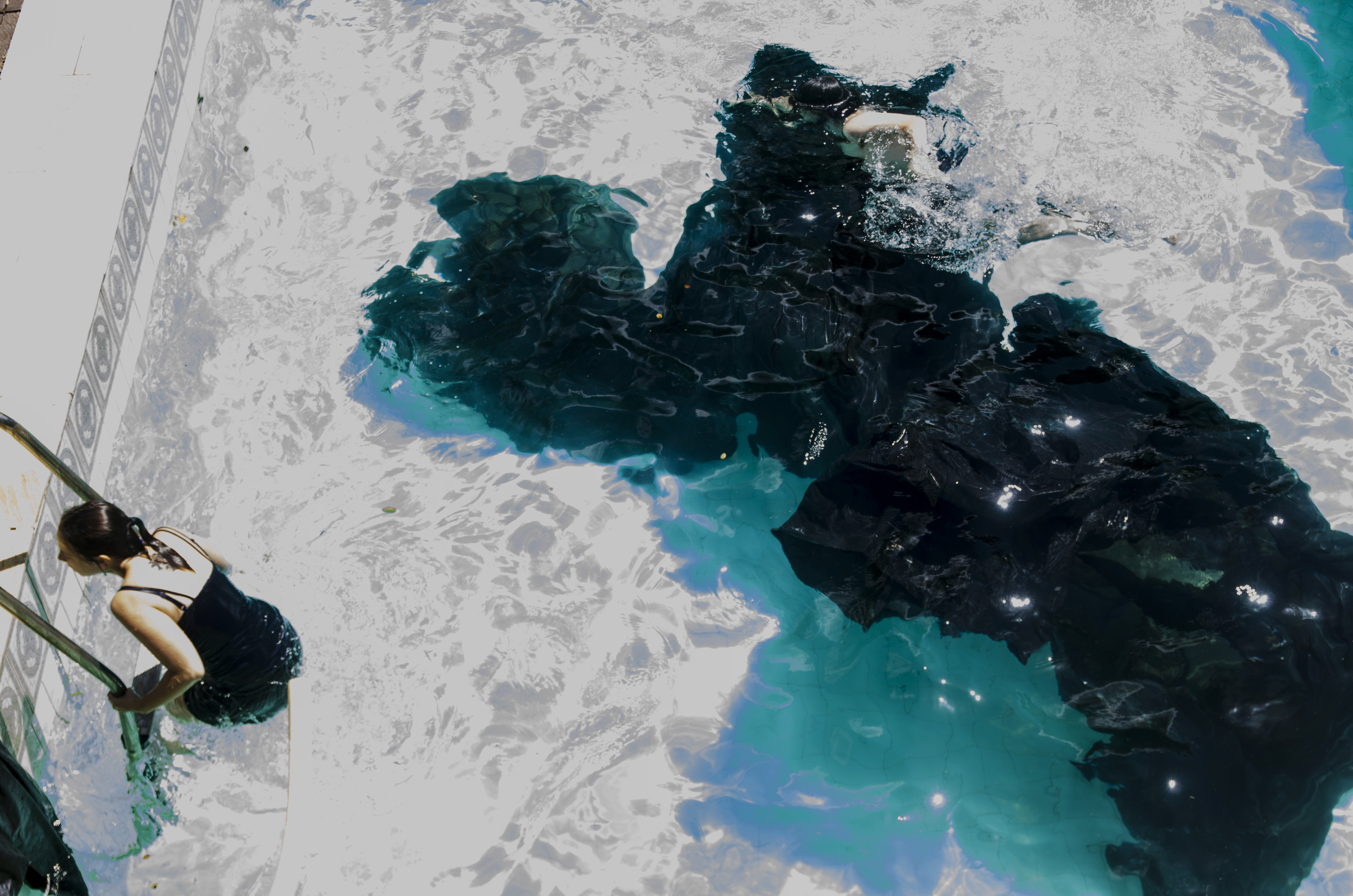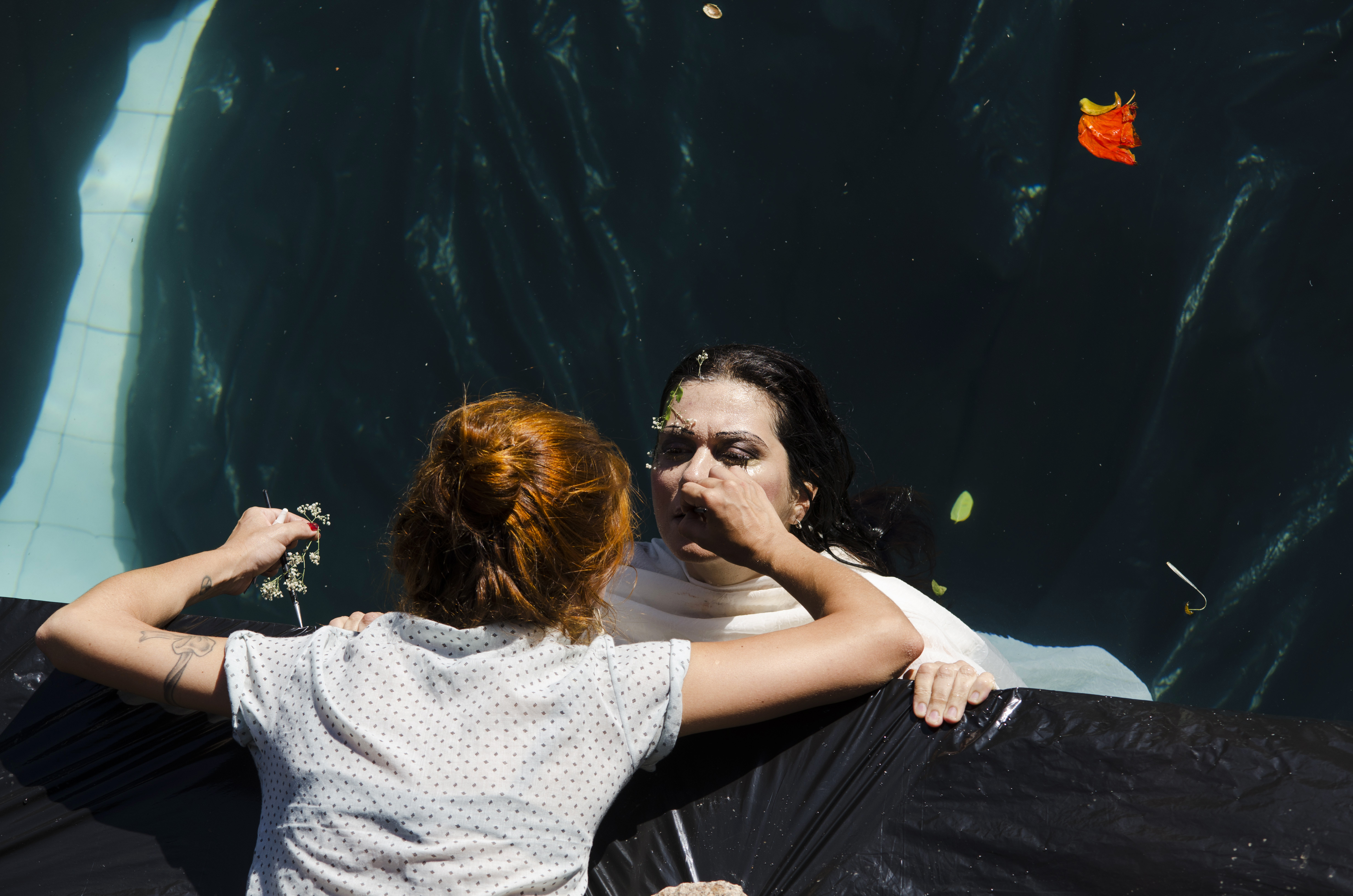 criando a cena onde vemos Ofélia submergir nas águas, tal qual uma louca que se afoga em seus delírios; levada pela correnteza fria, aliviando sua existência dos pensamentos que a assolam… preparando a imagem que capta a poeta mergulhada em seus devaneios…